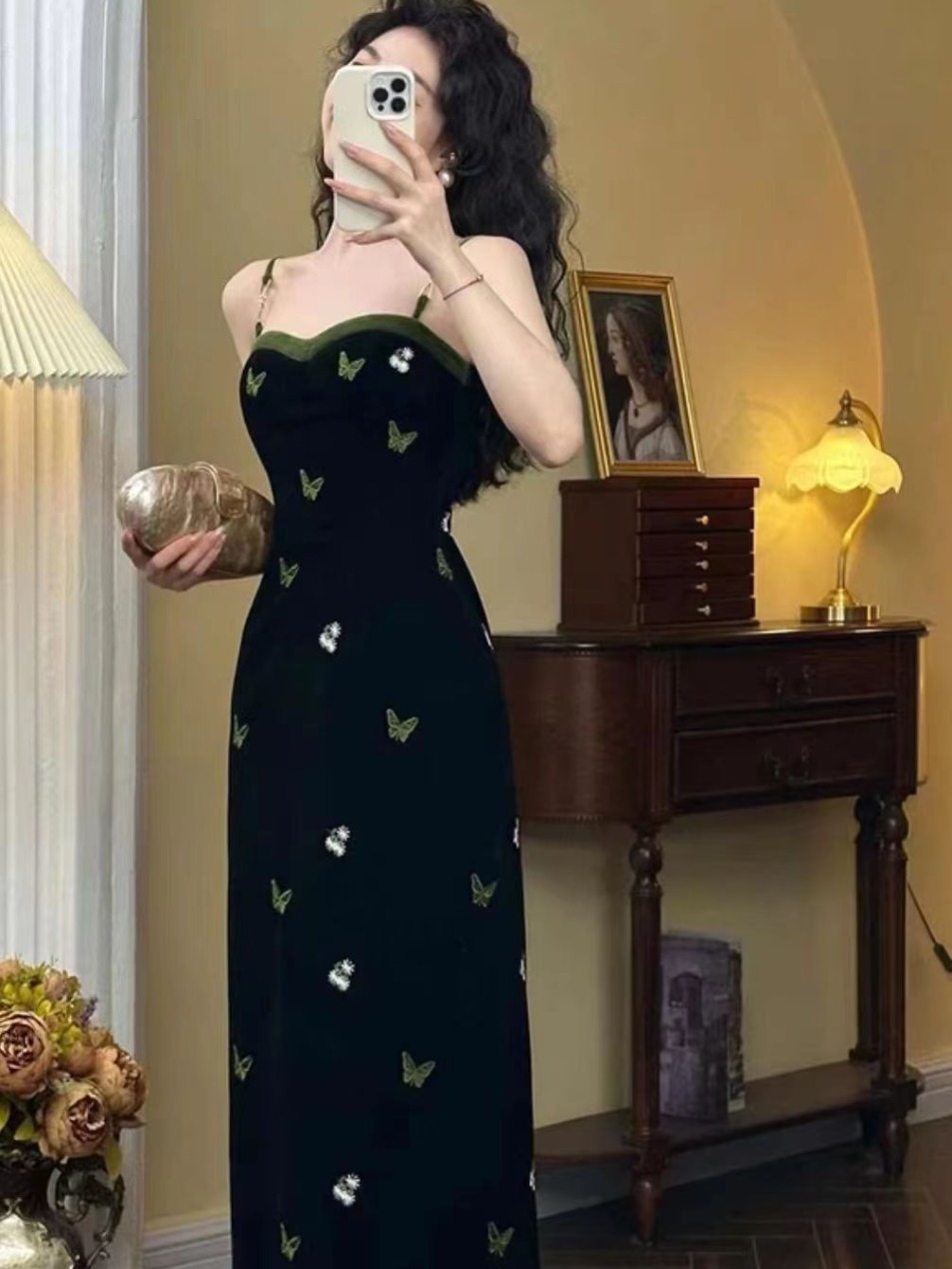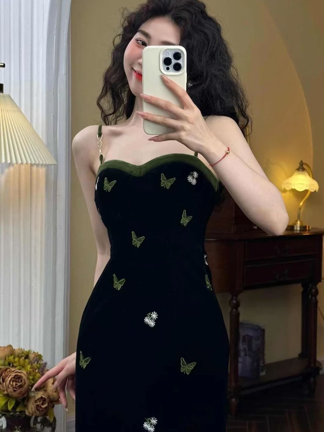 22-Black suspender dress for women in autumn and winter new style petite fragrant suspender skirt to wear with a complete suit