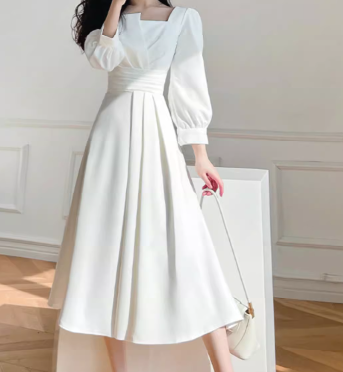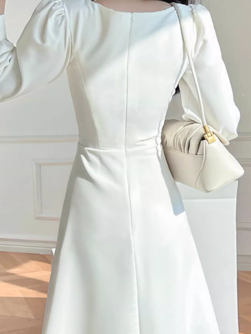 25-Autumn women's new temperament French niche design light luxury high-end waist long-sleeved white dress